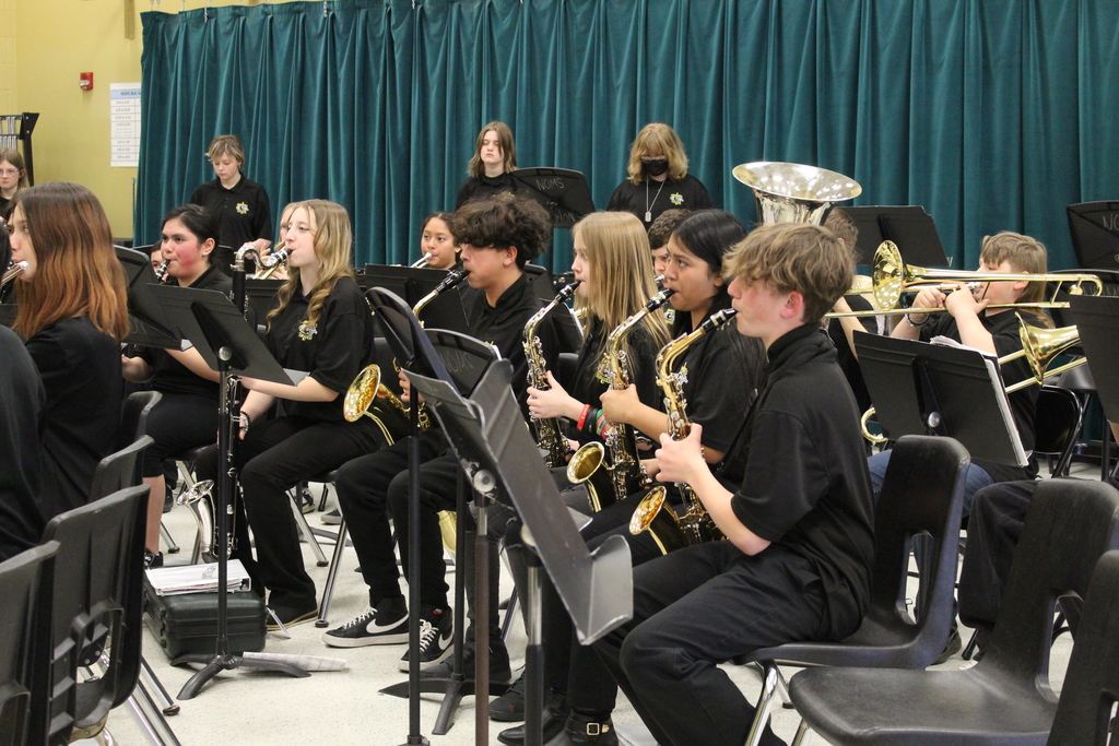 The Carroll County Middle School seventh and eighth grade bands performed for residents at Signature Healthcare in Carrollton before Christmas break. (Photos courtesy of Band Director Elliott Hawks.)